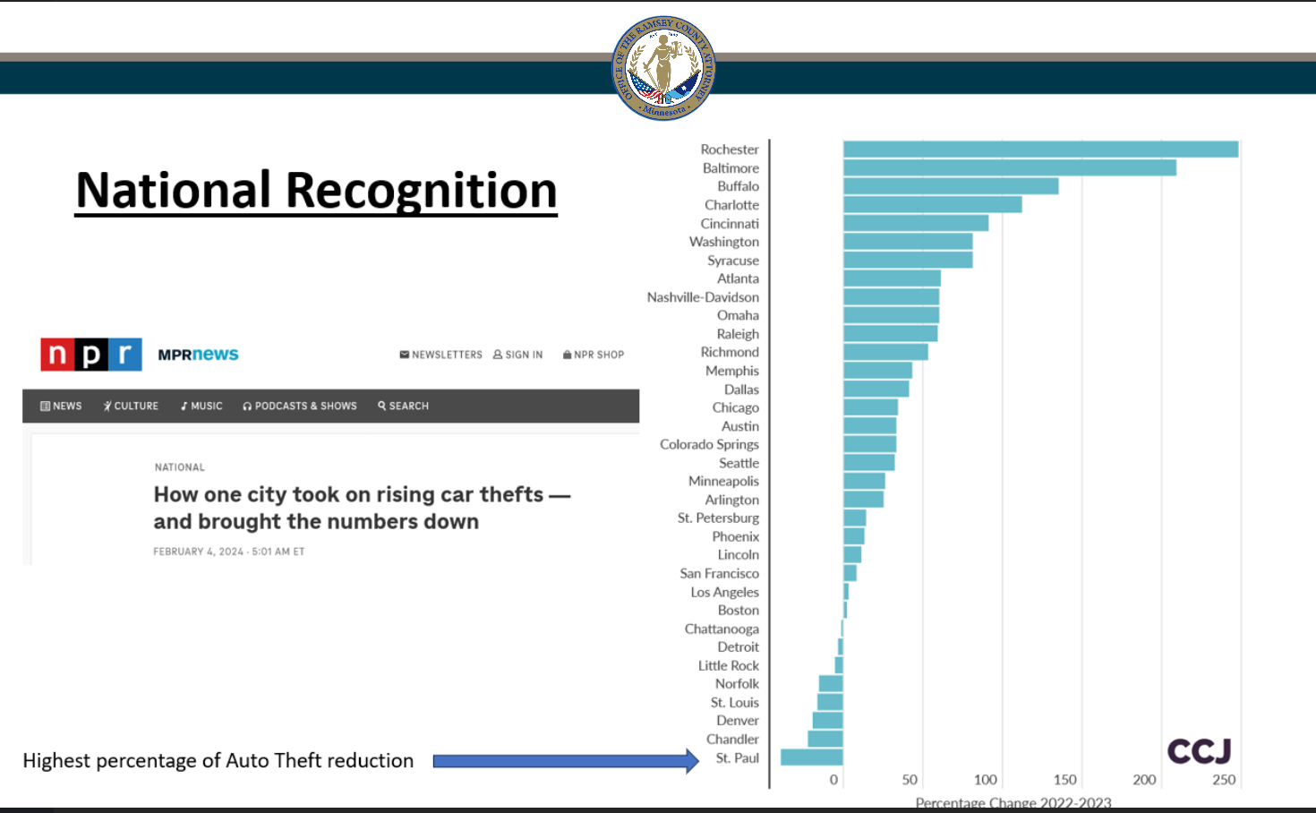 - Nation-leading reductions in carjackings (78% since 2021) and auto thefts for two years in a row (55% since 2023);